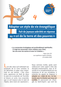 Le 4ème chapitre de la lettre pastorale de Mgr Jean-Marc Eychenne, Évêque du Diocèse de Grenoble-Vienne est sortie au mois de janvier 2026 et s’intitule « Adopter un style de vie évangélique fait de joyeuse sobriété en réponse au cri de la terre et des pauvres ».