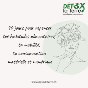 Du 18 février au 2 avril 2026, avec un groupe de votre paroisse/église ou avec un groupe constitué pour l’occasion, Détox’ la Terre (parcours œcuménique suisse) propose de faire un jeûne de consommation sur des éléments au choix des participants comme le numérique, les achats, le transport, votre alimentation, ou dans votre habitation.