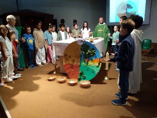 Depuis 2019, date où la paroisse a découvert l’outil Église verte, il était organisé une à deux messes de la création par an, à partir des textes du jour. Nous prenions des chants de louange sur la création et faisions des prières de pardons, de demandes et de remerciements, sur nos relations à Dieu, aux autres, à la création et à nous mêmes.