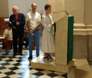 Cette nouvelle messe proposant deux textes d’évangile, il a été retenu celui dans Matthieu (8, 23-27 « Jésus, debout, menaça les vents et la mer, et il se fit un grand calme ») pour le samedi (messe présidée par le père Christophe JULLIEN – ce texte avait fait l’objet d’une Lectio Divina dans le jardin de prière de la paroisse le matin même), et Matthieu (6, 24-34 « Ne vous faites pas de soucis pour demain ») pour le dimanche (messe présidée par le Père René QUAN).