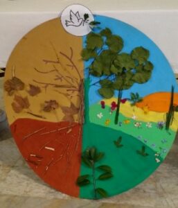 Les enfants du catéchisme présents le samedi, avaient réalisé le symbole du thème du Temps pour la Création 2025 « Paix avec la création ».