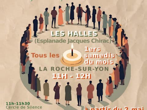 2 mai 2026 – 4 décembre 2027 @ 11 h 00 min – 12 h 00 min – Église verte Vendée en œcuménisme, avec CVX, EPUdF Eglise réformée la Roche sur Yon vous invite à participer au cercle de silence tous les 1ers samedi du mois, de 11h à 12 h, place des Halles à la Roche sur Yon. La thématique générale qui éclairera les cercles est « sensibiliser le public aux problèmes environnementaux […]
