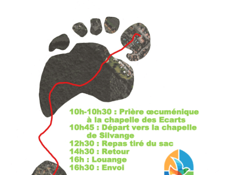 8 mai 2026 @ 10 h 00 min – 16 h 30 min – 10h-10h30 : Prière œcuménique à la chapelle des Ecarts 10h45 : Départ vers la chapelle de Silvange 12h30 : Repas tiré du sac 14h30 : Retour 16h : Louange 16h30 : Envoi