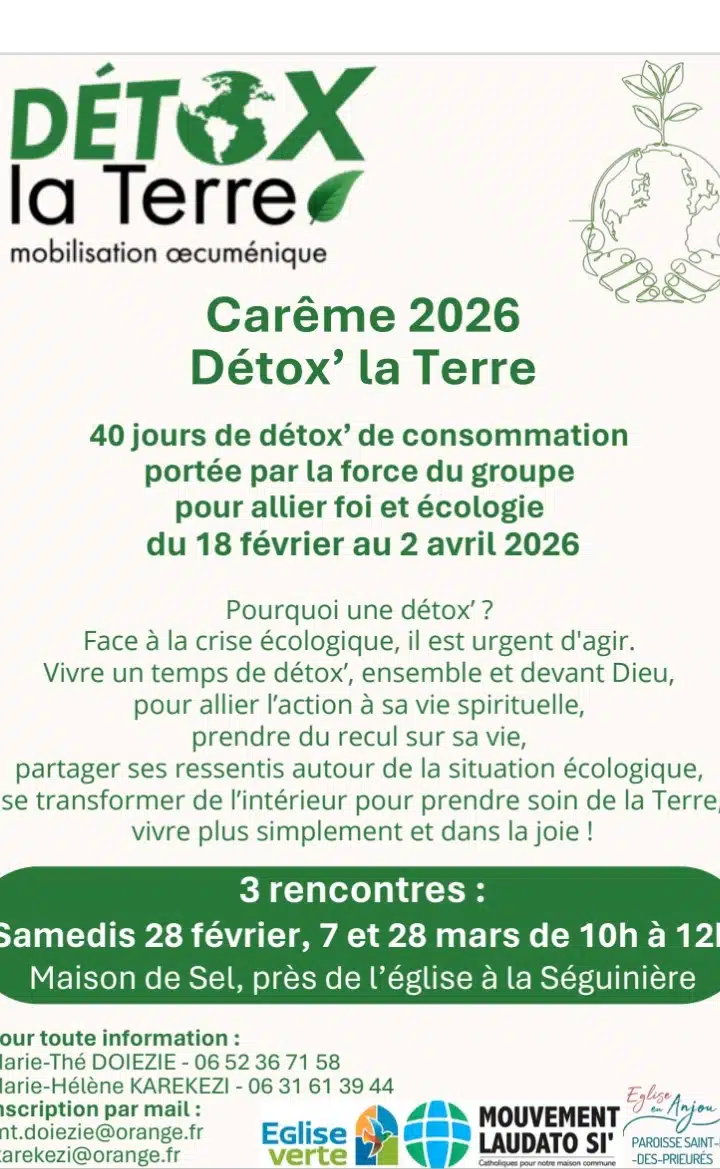 Suite au ciné-débat interactif autour de la Lettre, en mars 2025, nous organisons 3 matinées pendant le temps de carême 2026, à partir de la proposition de carême DETOX LA TERRE.