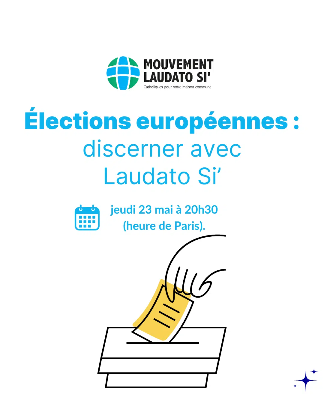 Mouvement Laudato Si' anne.d@laudatosimovement.orgLe MLS organise un ensemble d’actions pour sensibiliser aux enjeux des élections européennes pour s’informer, sensibiliser et interpeller.