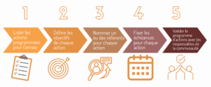 - Définir un programme d’actions chaque année (actions, objectifs, responsables, échéances, etc),